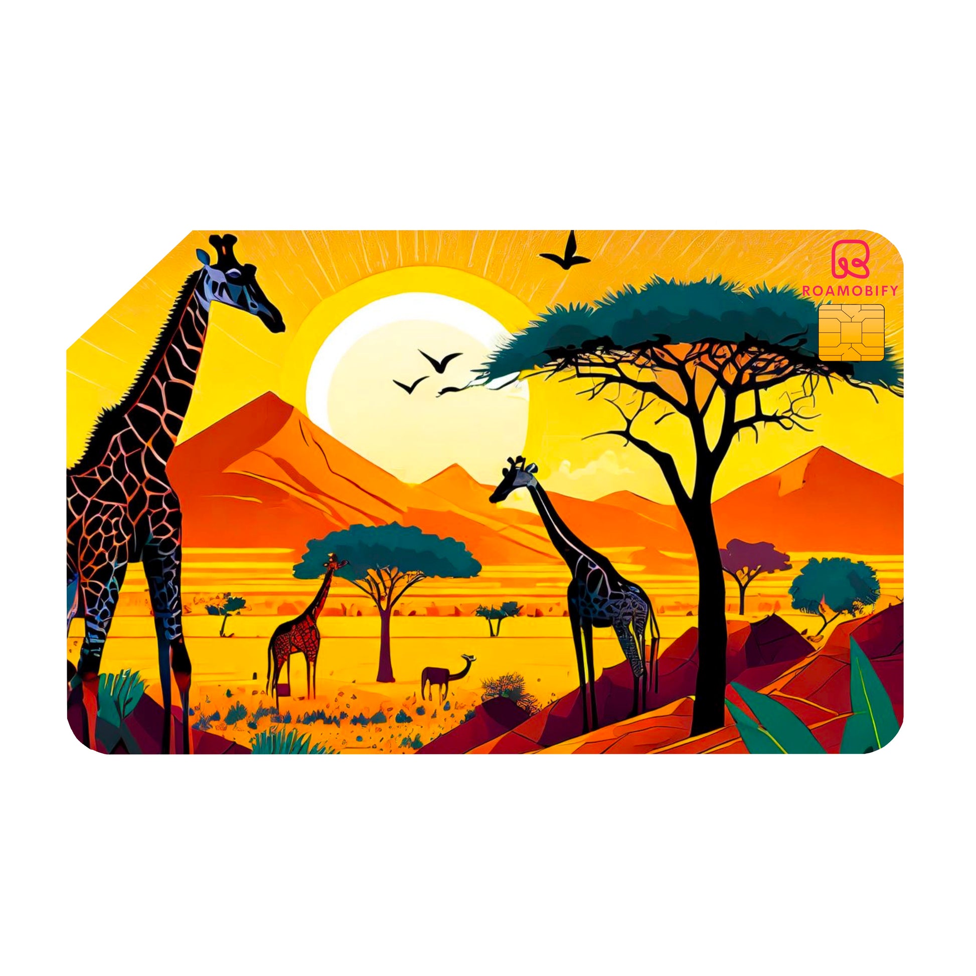 Africa (25+ areas) travel roaming eSIM. Use within 180 days of purchase. Speeds of 3G/4G/5G. Installs on one device multiple times. Can not be transferred. Hotspot shareable.